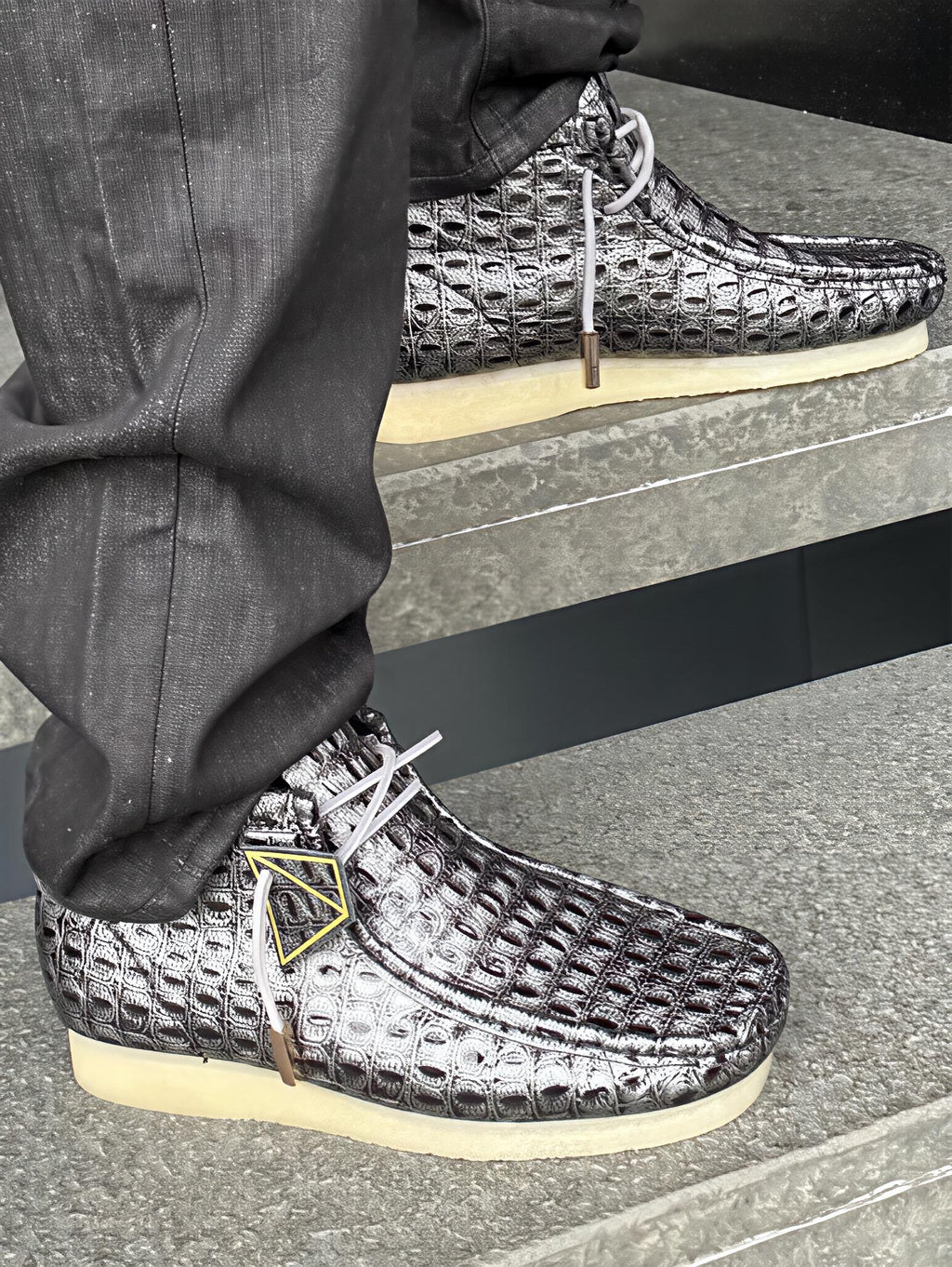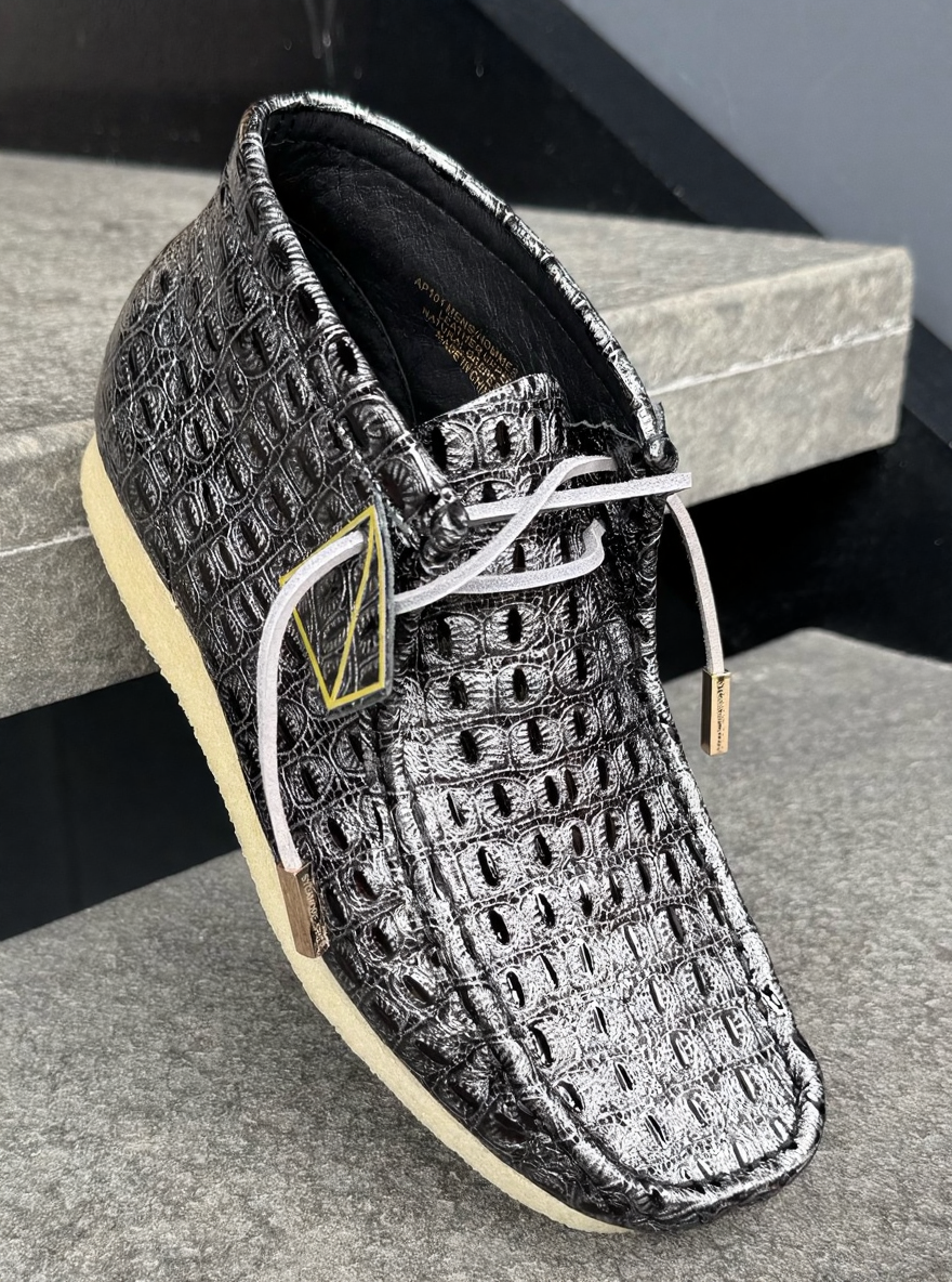 - NEVER SEEN BEFORE: ORIGINAL DESIGNED BY SYC MATERIAL - Snake Eye embossed premium patent leather upper in Black & Grey