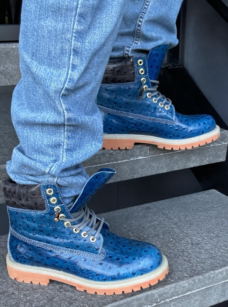 Sycamore Style  CONSTRUCTS™ "BLUEBERRY" Ostrich Embossed Premium Leather Construction Boot